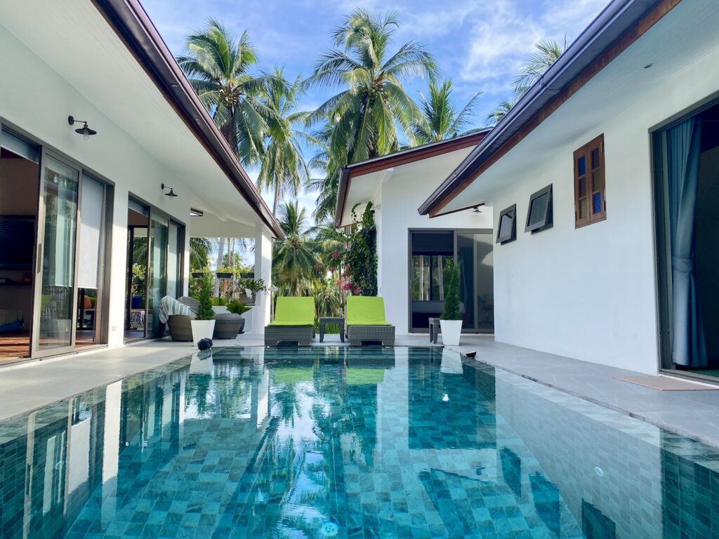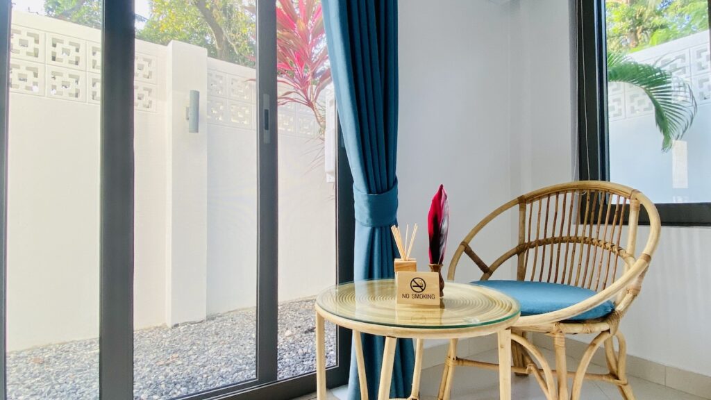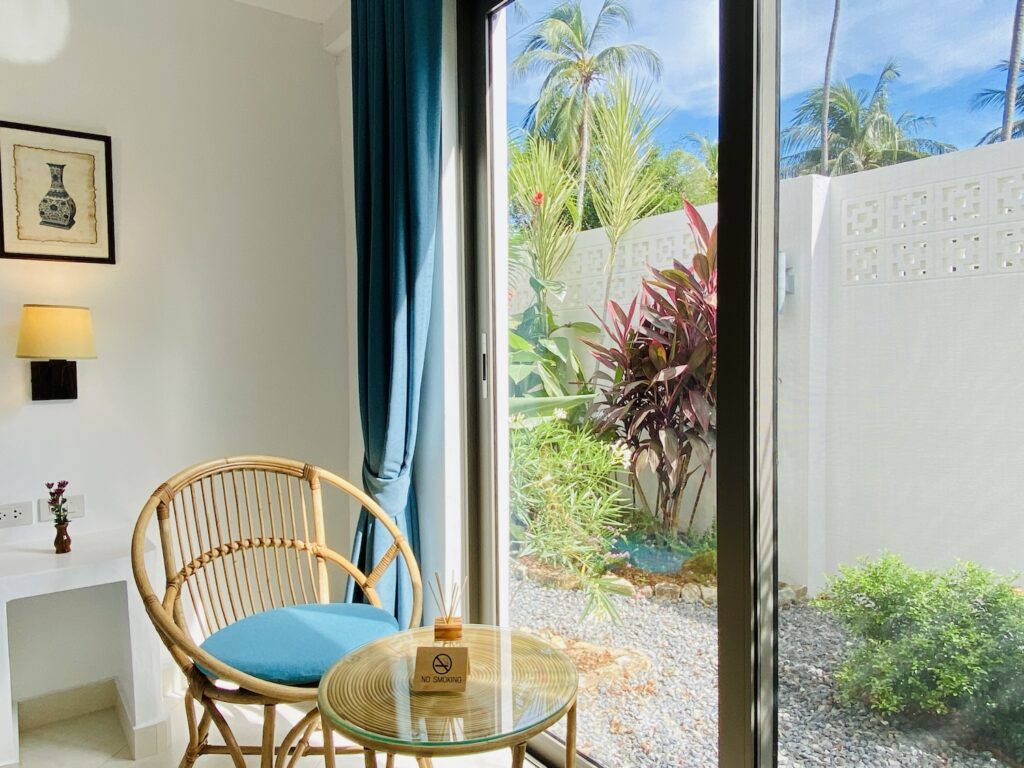 As the property is located on the south side of the island (quiet side), a rental car or scooter would be highly recommended and useful. There is a small fishing village close by with a 7/Eleven as well as several bars and restaurants, however the closest supermarket is about a 15 minute drive away.